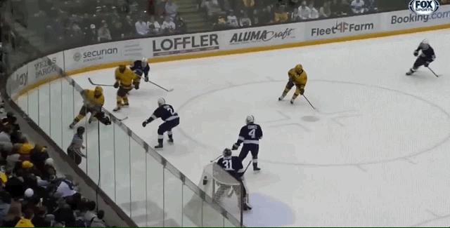 Michigan State: I highlighted that Patrick Khodorenko could open Ohio State up when I previewed this and he did just that with four assists in the 7-7 tie — two of which were primary looks in the final minutes. From behind the net, he centered the puck to the point 6-on-5 as Dennis Cesana was there to catch and tie the game in the last minute. I also loved his effort on the 6th goal (below). It seemed like he was out for the entire end of the game. NCAA top scorer Taro Hirose was productive with a two-goal, one-assist night on Friday as well.